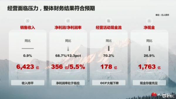 华为方面表示,华为盈利下滑原因主要是整体的经营利润在下滑,以及研发投入在加大,这是造成整个经营盈利能力下滑的一个主要原因。