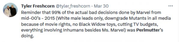 还有人提到了珀尔马特的“罪状”:别忘了,就是因为他,漫威的“X战警”和“神奇四侠”才被坑了。