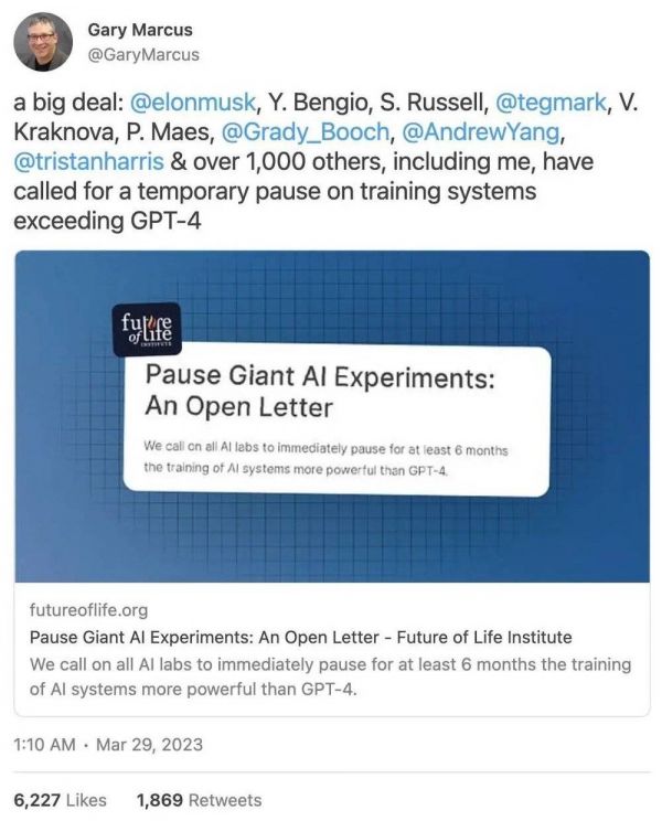 当生命研究所的公开信发布后,Gary Marcus 可以说是该观点最坚定的支持者。
