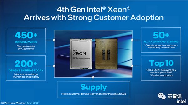 根据英特尔公布的数据显示,第四代至强Sapphire Rapids虽然有些姗姗来迟,但它已经赢得了450多款系统设计,创下历史新高。其中,50多家厂商伙伴的200多款产品已经出货上市,首发出货规模也是历史之最,全球10大云服务企业也将在2023年内全部部署新平台。