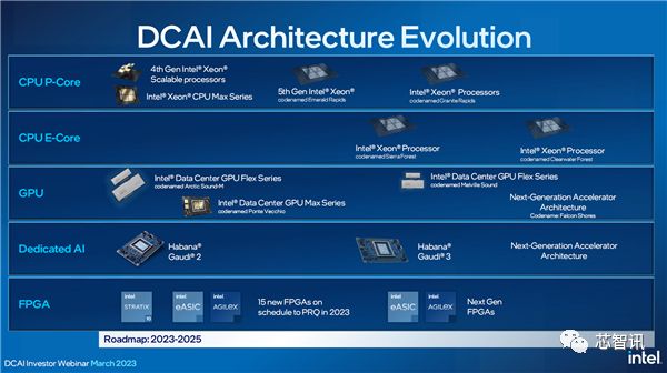 3月29日晚间,英特尔举办了一场“数据中心与人工智能事业部投资者网络研讨会”,公布了2023-2025年的至强平台路线图,其中包括了四款新品。此外,英特尔还介绍了其GPU计算加速器、AI加速器、FPGA方面的一些规划。
