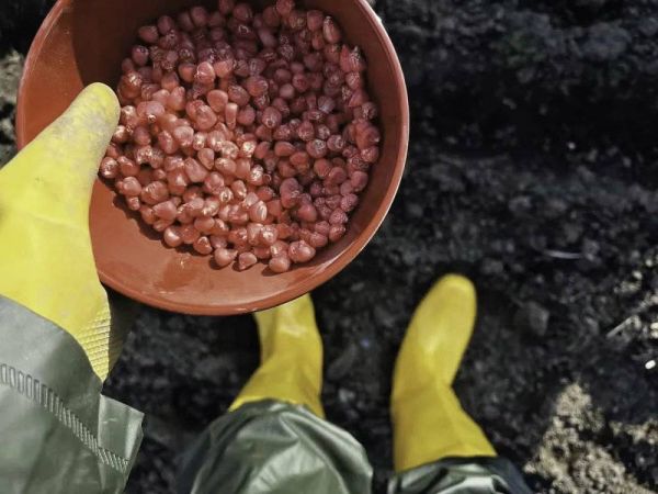 绿子在菜地里播种玉米种子。(受访者供图)