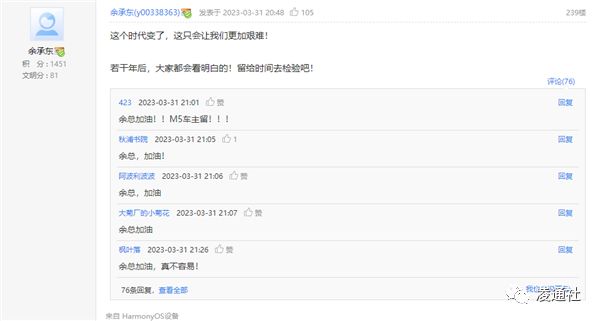 在任正非公开再次表示华为不造车之后,余承东只能亲自“杀”了自己,多个公开媒体报道,从4月1日开始,问界店面所有的物料中不能再有华为字样的宣传物料,华为问界回归问界,华为的工作是“是帮助车企造好车”,对次,余承东在内部回应说“:“这个时代变了,这只会让我们更加艰难!若干年后,大家都会看明白的!留给时间去检验吧!”“对一个行业,只有深入洞察,深刻理解,才能把握住正确的方向!标记一下,若干年后再来看吧!”