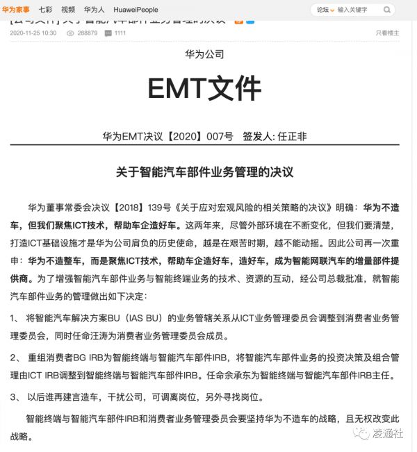 智能终端与智能汽车部件IRB和消费者业务管理委员会要坚持华为不造车的战略,且无权改变此战略。