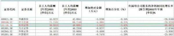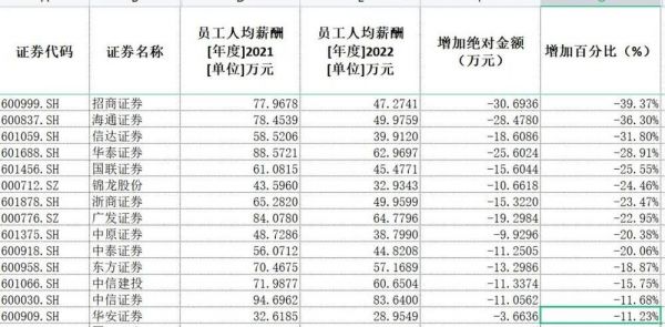 信达证券、中原证券、东方财富、锦龙股份、华林证券则位于30万+区间,目前人均薪酬最低的两家为华安证券,去年人均年薪仅为28.95万元。
