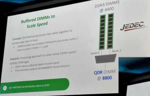 在 Memcom 2023 活动上,AMD 宣布目前正与 JEDEC 合作开发 DDR5 MRDIMM 标准内存,目标传输速率可以达到 17600 MT / s。