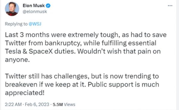 上月早些时候,马斯克在一场会议上强调,推特的负债水平非常高,每年需要花费大约 15 亿美元来偿还债务,这一数字大约相当于其目前的现金消耗率。