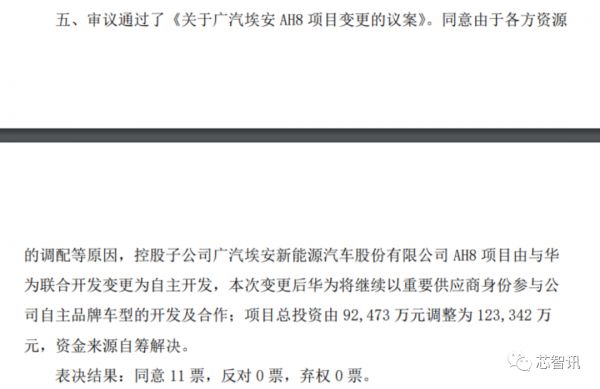 华为官方对此事也回应称:“广汽与华为双方经过充分沟通,根据实际情况综合判断,故调整为埃安自主开发,本次调整后华为将继续以重要供应商身份参与广汽集团自主品牌车型的开发及合作。”