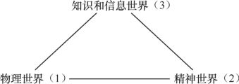 1967年,波普尔对如上交织而漫长的哲学历程做了一个了结,他提出了三元世界的观点,布尔金将其绘制如下: