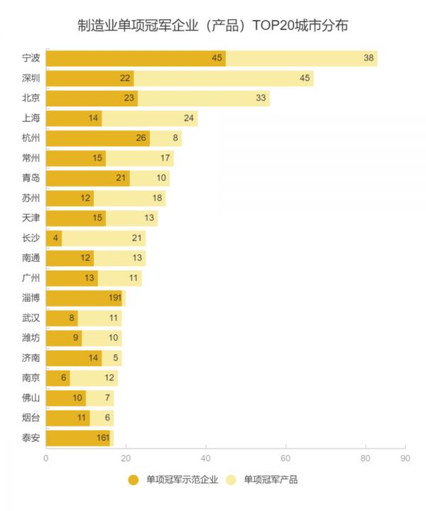 但是,宁波在全国所有城市中,拥有的制造业单项冠军企业却是最多的。