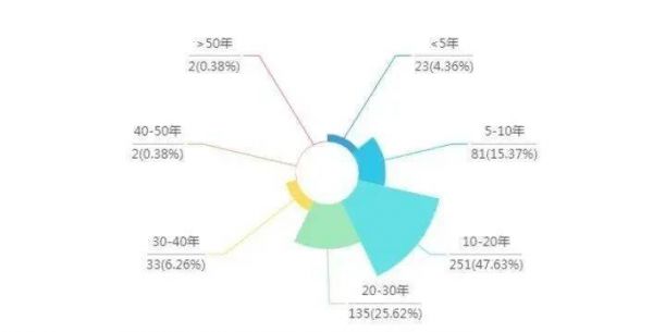 2021年的数据显示,宁波单项冠军及培育企业从事主营产品的时间平均为19年。其中,10~20年的企业数为181家,占比为47.14%;20~30年的企业数为99家,占比为25.78%;超过40年的企业有4家,其中有2家企业从事主营产品年份已超过50年。