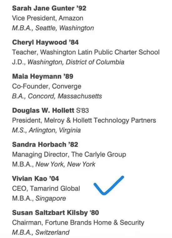 与此同时,她还是家族管理投资公司Tamarind Global的首席执行官,韦尔斯利的校董。