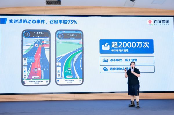 依托文心交通大模型,叠加北斗高精能力,百度地图智能交通效果实现跃迁。截至目前,百度地图车道级导航每天帮用户超2000万次避险,动态事件召回突破93%;同时,实时车位覆盖破百万,车位级导航平均节省76.9%的找车位时间;此外,百度地图还率先覆盖全国超99%的新能源充电站,精准引导找桩,成为特斯拉等新能源品牌车主首选。