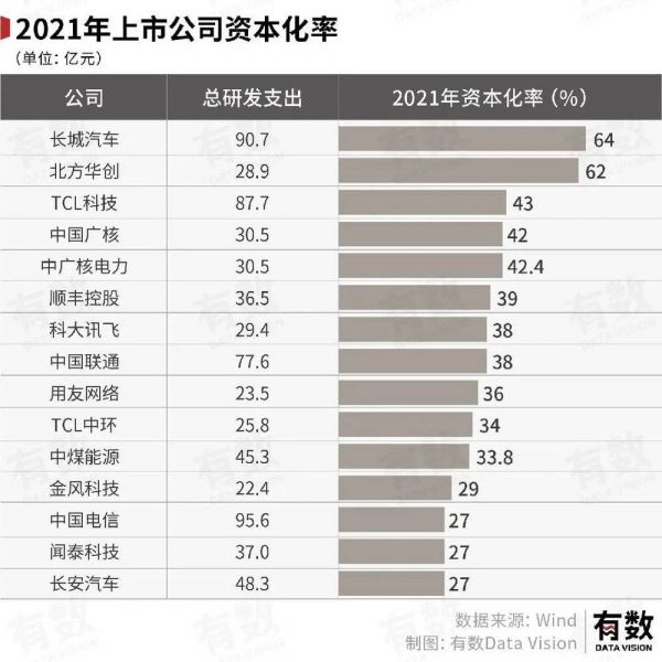 当然,不排除一些公司为了提高利润水平进行这种操作的可能。比如长城汽车,作为一家老牌车企,在如今向新能源转型时,就将大量研发支出资本化,体现在2021年年报上,得以保留67.25亿的净利润。
