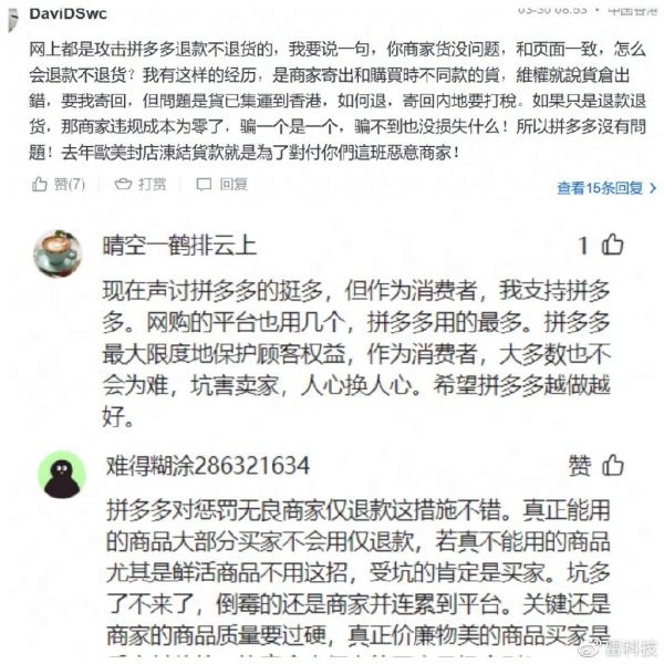 而拼多多上那些被指对商家「苛刻的平台规则」,不仅是为了提高售假商家的成本从而逼迫他们退出,恰恰也是保证消费者体验和权益的关键。很多网友都指出,如果商家的产品没问题并与页面一致,普通消费者怎么「仅退款」?拼多多和消费者本质上也是在清理那些不良商家,维护更好的买卖生态。