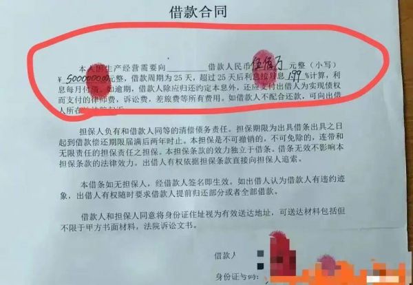借款合同照片显示,借款金额是500万元,借款周期为25天,超过25天后利息按月息1.99%计算。另外,该借款合同并没有出现出借人的姓名及相关身份信息。