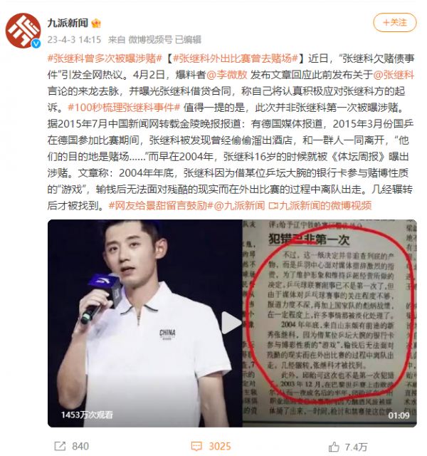 近日,知名乒乓球运动员张继科深陷入舆论风波。