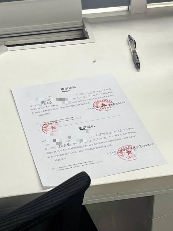 △ 虎头局员工离职证明 时代周报记者摄