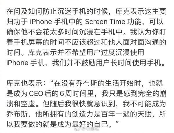 #库克称不可能成为乔布斯# 库克:我不可能成为乔布斯,他所拥有的创造力是百年一遇的天赋,我要做的就是成为最好的自己。