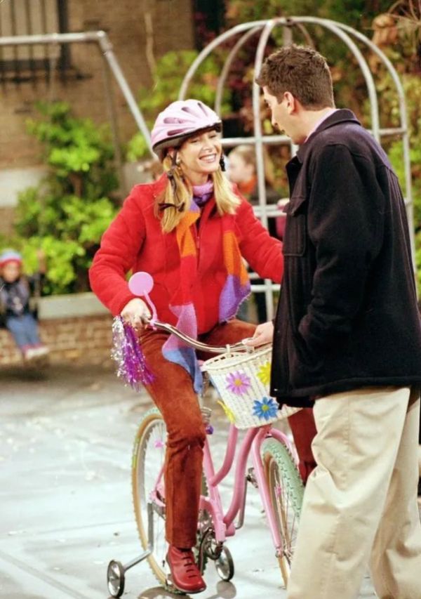 剧中有一个情景刻画了我们对友情的期待。菲比吐槽因家庭贫困、无法在童年拥有漂亮的脚踏车。罗斯把她随口说出的牢骚放在心里,送给了她最酷的粉红色脚踏车。