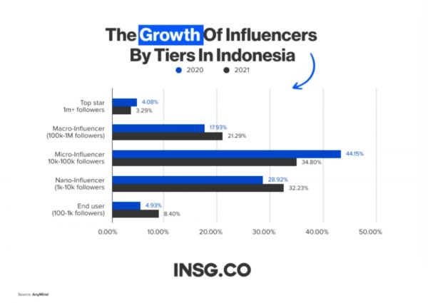 印尼市场中小网红增长率在30%以上,数据来源于AnyMind
