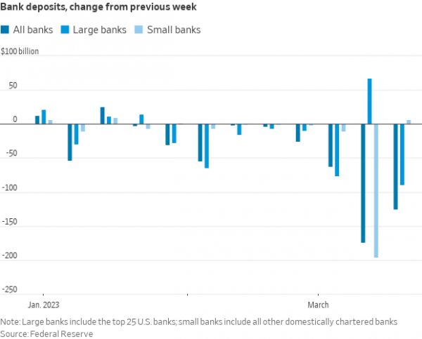与之前一周相比,在美联储最新公布的商业银行存款数据中,有一处变动显然很快受到了业内瞩目——那就是在经历了最初大面积的存款外流之后,小银行的存款情况开始稳定甚至出现存款增加,而前一周还获得明显存款流入的前25大银行,在最新的报告中却成为了存款外流的“大头”。