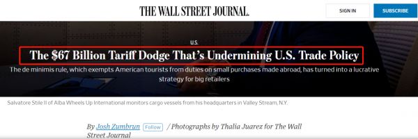 华尔街日报曾报道,一批跨境卖家会把货物运到港口之后,转进报税卡车进入墨西哥境内,再转至墨西哥保税仓,接着委托服务商将大批货物拆散,化整为零,成为de minimis后进入美国市场。