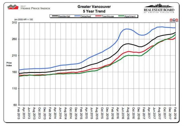 但刚出台后力度显然不够,当时大温房价并没有受到空置税出台的影响,房价甚至还略有上升,特别是空置税本来想要重点关照的对象:公寓,其价格涨势尤为明显。