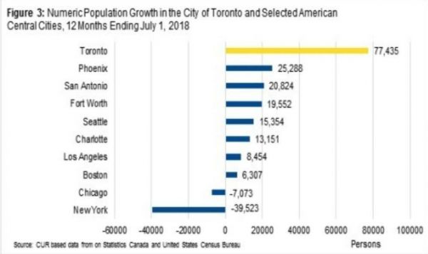 2017年7月至2018年7月,多伦多新增7.7万多名新居民,是整个北美排在第二名的凤凰城的三倍以上。