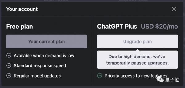 本文来自微信公众号:量子位 (ID:QbitAI),作者:杨净,原文标题:《突发!ChatGPT Plus停售》,题图来自: