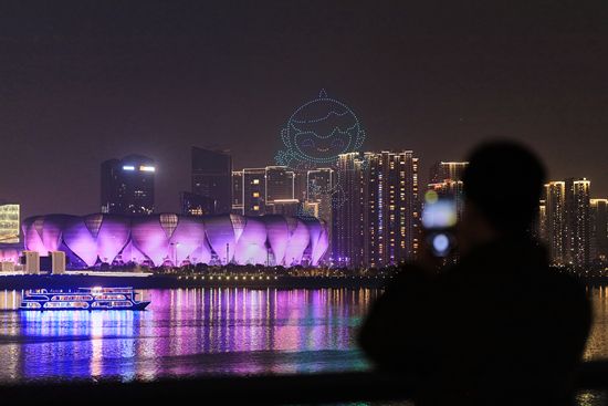 3月7日,杭州亚运会倒计时200天,游人在拍摄无人机表演。视觉中国供图“沉浸式、多维度的观赛体验,综合运用人工智能、机器视觉等前沿技术的智能安防,一站式数字观赛服务平台,全球首个大型综合体育赛事元宇宙……”距杭州亚运会开幕不到200天,关于亚运的“智能”场景已经引发关注。