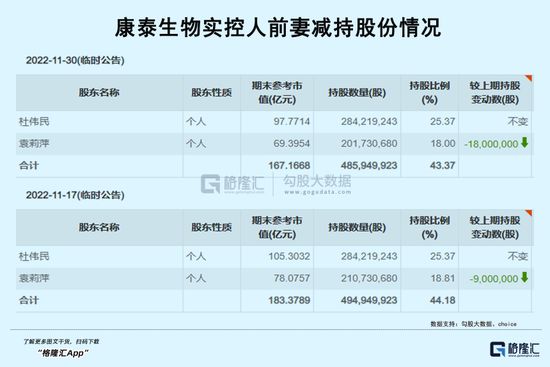 比如康泰生物的的实控人杜伟民离婚后,将名下23.99%股份转让给前妻袁莉萍,当期市值高达235亿的A股之最。
