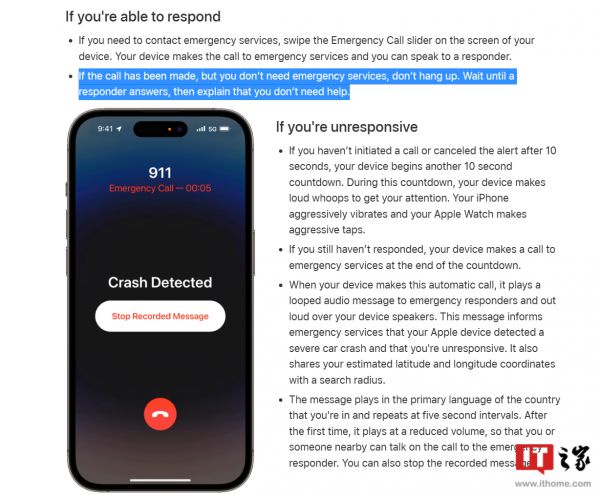苹果在最近几次 iOS 16 更新中优化了碰撞检测,以减少误报情况。IT之家查看苹果官网发现,在最近更新的车祸检测支持文档中,苹果还更改了在意外拨打电话时对用户的建议,改为不要挂断电话,而是向紧急响应人员解释不需要帮助。