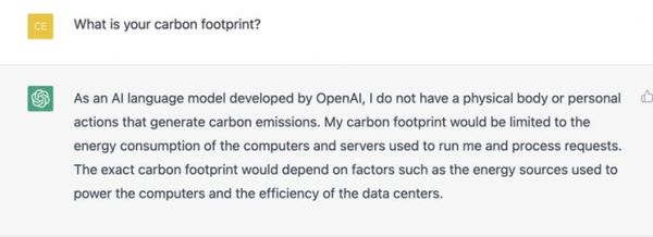 有好事者问ChatGPT,说说你的碳足迹吧。
