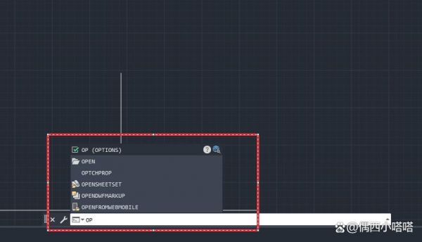 1、在命令行里键入OP或 OPTIONS空格,会调出“选项”对话框窗口,和前面2种方法一模一样,也是最简洁顺手的路径: