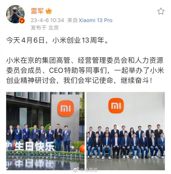 小米举办创业精神研讨会,雷军晒小米高管团队合照纪念……