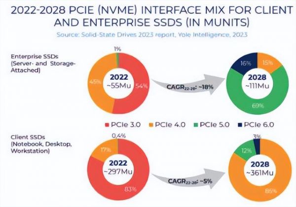 PCIe 6.0 SSD预计2026年诞生,2028年可在企业级市场上达到16%的份额,消费级市场只有3%。