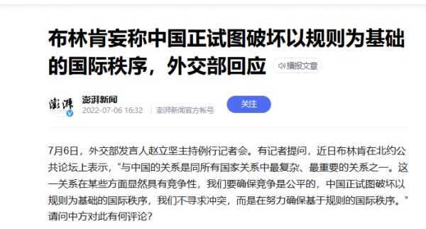 然而,在这个霸权信誉已经被极大清出的基础上,拜登政府上台之后,以布林肯,沙利文为核心的决策层又试图重新强化美国的全球领导者地位,不断在各种场合反复声称其他国家要服从美国这套“基于规则的全球秩序”。