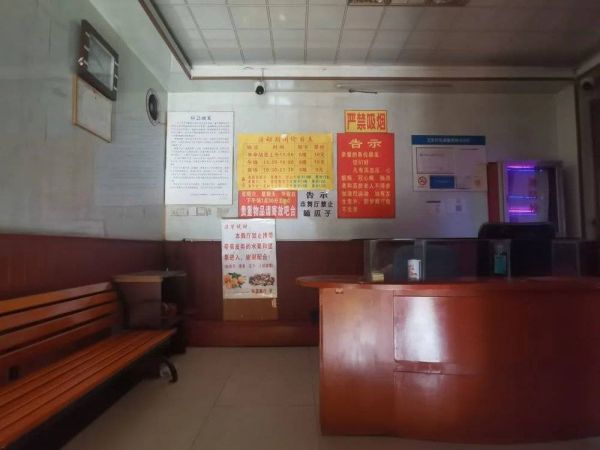 二楼的售票台是老式镶嵌着玻璃的柜台,背后的墙面上贴着温馨提示、告示、以及价格表。