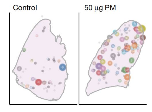 之后,研究者使用小鼠模型来研究与空气污染相关的肺癌进展的细胞过程。研究发现,细小的颗粒物PM2.5可能会促进大量免疫细胞的涌入,刺激白细胞介素-1β的释放,从而在肺部细胞中引起更多的炎症反应。