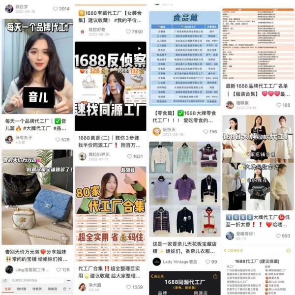 从安踏、ZARA的服装,无印良品的日用品,到三只松鼠、良品铺子、百草味的零食,几乎都能找到1688的代工厂分享。
