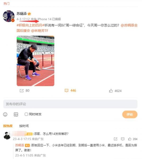 苏炳添回应手机从小米换成苹果,网友:要考虑下以前的合作商
