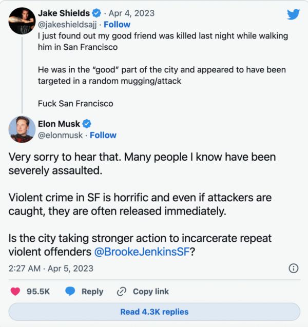 马斯克施压旧金山检察官采取措施,图源:推特