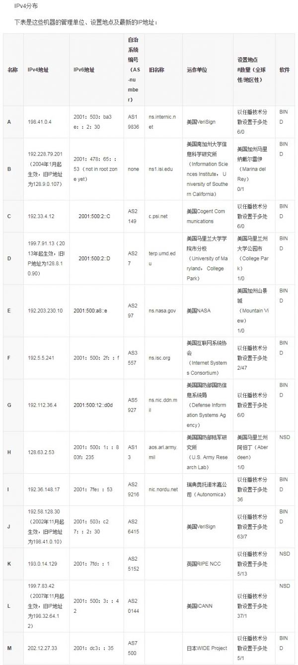 实际上,两家机构建设的仅是域名根服务器的镜像服务器,其在全世界范围内有近一千台。目前,在IPv4协议上,全球13台根服务器都为美国、欧洲、日本所有,中国尚无根服务器。但中国有能力应对来自根服务器上的隐患,让中国网民正常上网不受影响。不过,企业域名一旦出现问题可能出现“断网”现象。