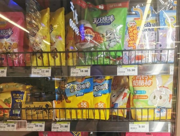 对小孩来说,在糖、香精等添加剂的帮助下,奶酪棒口感香甜。好吃之外,奶酪棒产品一般还会和汪汪队、艾莎公主、哆啦A梦等IP合作,从口味、包装等维度上,全面占领小朋友心智。