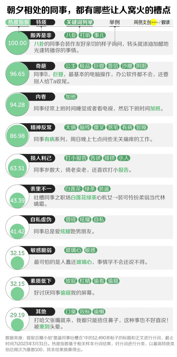 在豆瓣“职场吐槽大会小组”里,超过31万名上班族交流自己的职场故事。我们统计了组内四万多条帖子,发现职场不如意,十之八九是人带来的。