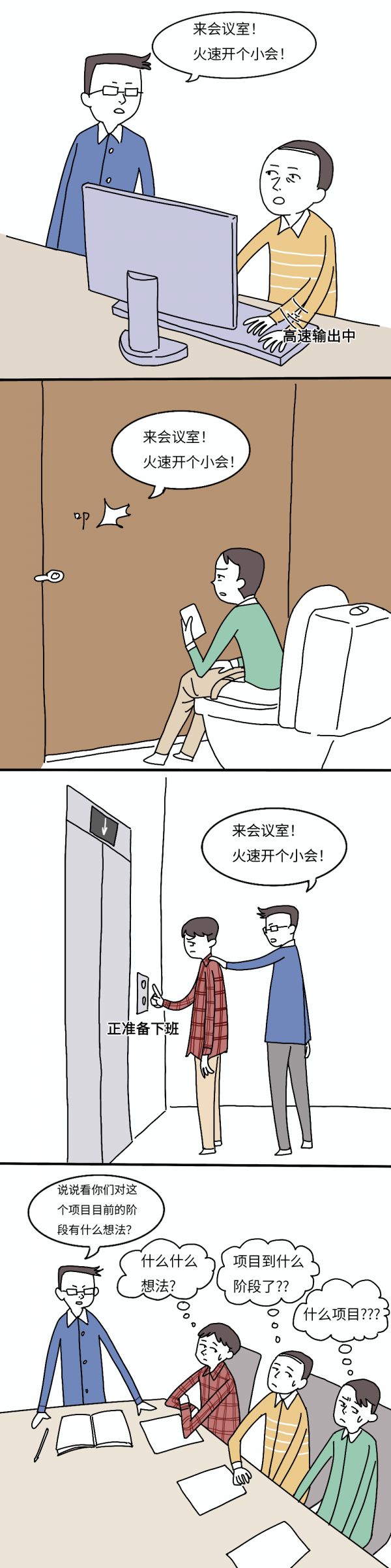 定义解析:指社畜正在认真工作,突然被拉去参加的毫无预兆、毫无准备、毫无头绪的会议。