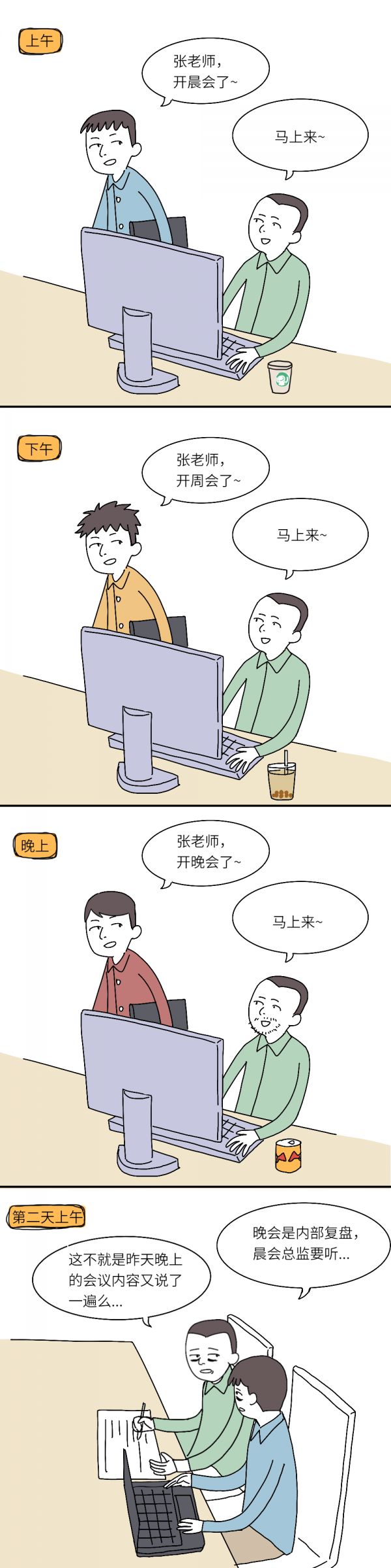 如果你以为开会的本质是带薪摸鱼,那你就大错特错了。上班就像上场踢,开会就是伤停时间,下班后可是要补时的。