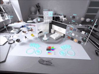 因为他们头上戴着VR眼镜,他们使用的工具软件只能在真实的3D环境下才行工作。