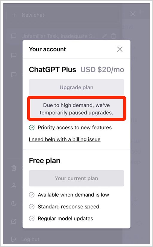 4月5日,OpenAI暂停了ChatGPT Plus(20美元/月)的销售,一天后又重新恢复,暂停注册的原因就是——算力需求量超载。